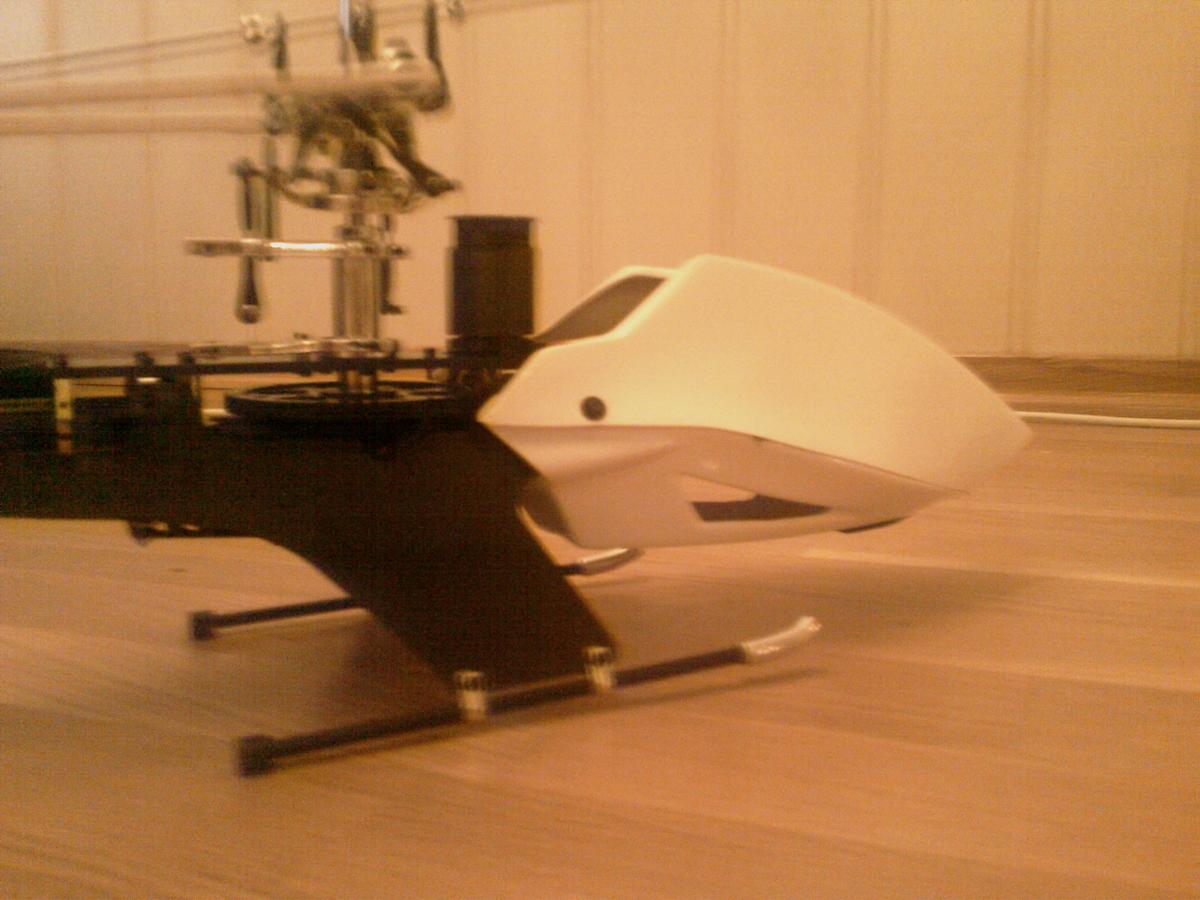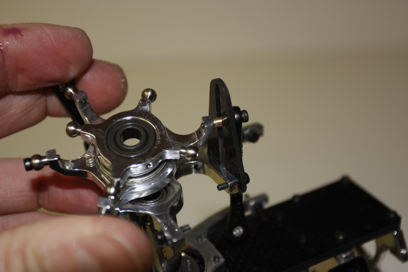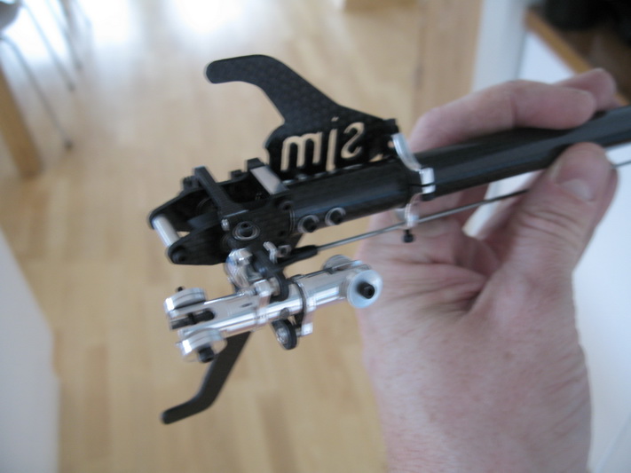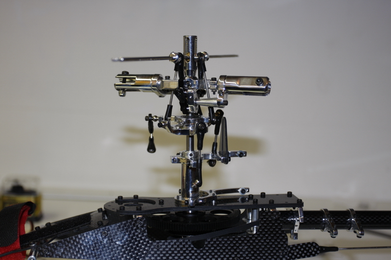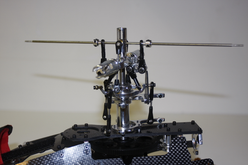 Hehe, er jo ikke rart den er stiv og responsiv siden det ikke er demping på hodet i det hele tatt. Av samme grunn må man være pinlig nøyaktig med å balansere alle roterende deler da små ubalanser merkes godt. Gjør man dette så får man et meget velflygende helikopter!