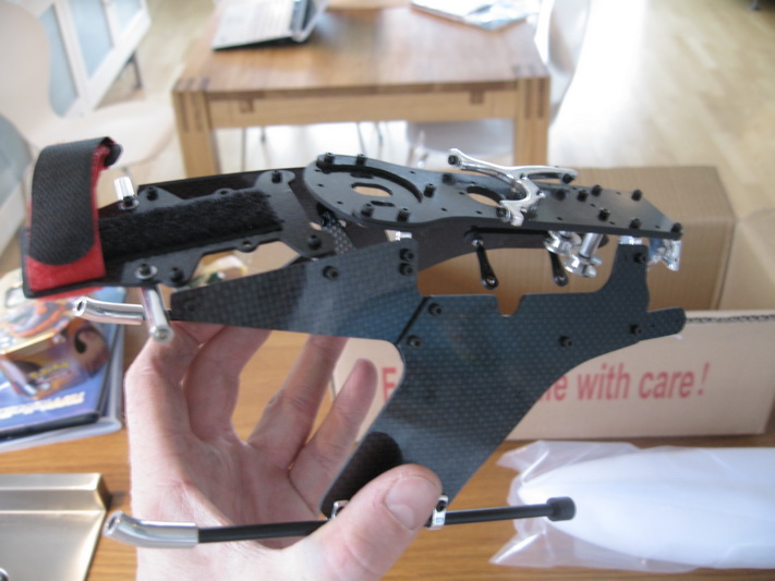 Da var esken i hus med 450 utgaven fra SJM. Pre-build og motor og esc i kombo. Fikk tatt noen raske bilder i dag før jeg drar på langweekend. En lekker kobinasjon av metall og karbon. Det ser riktig lekkert ut.
