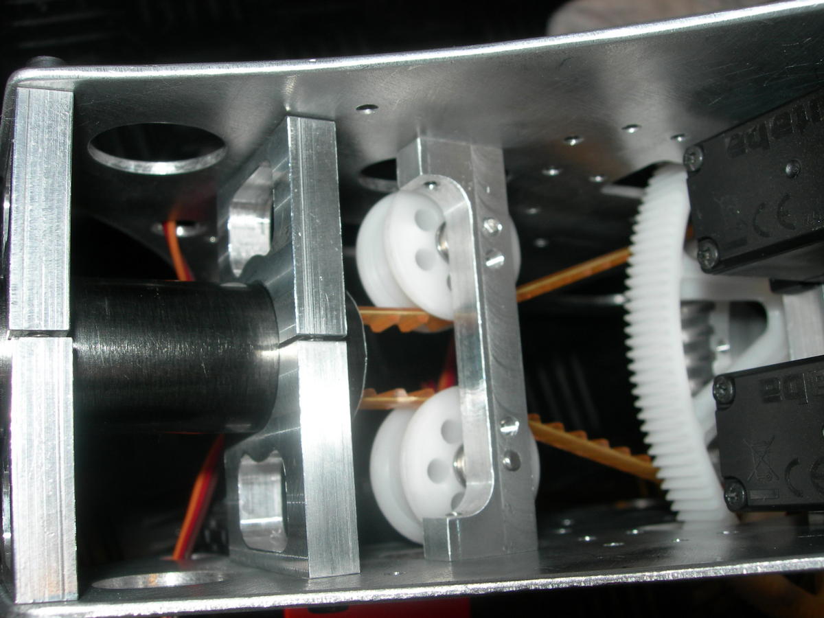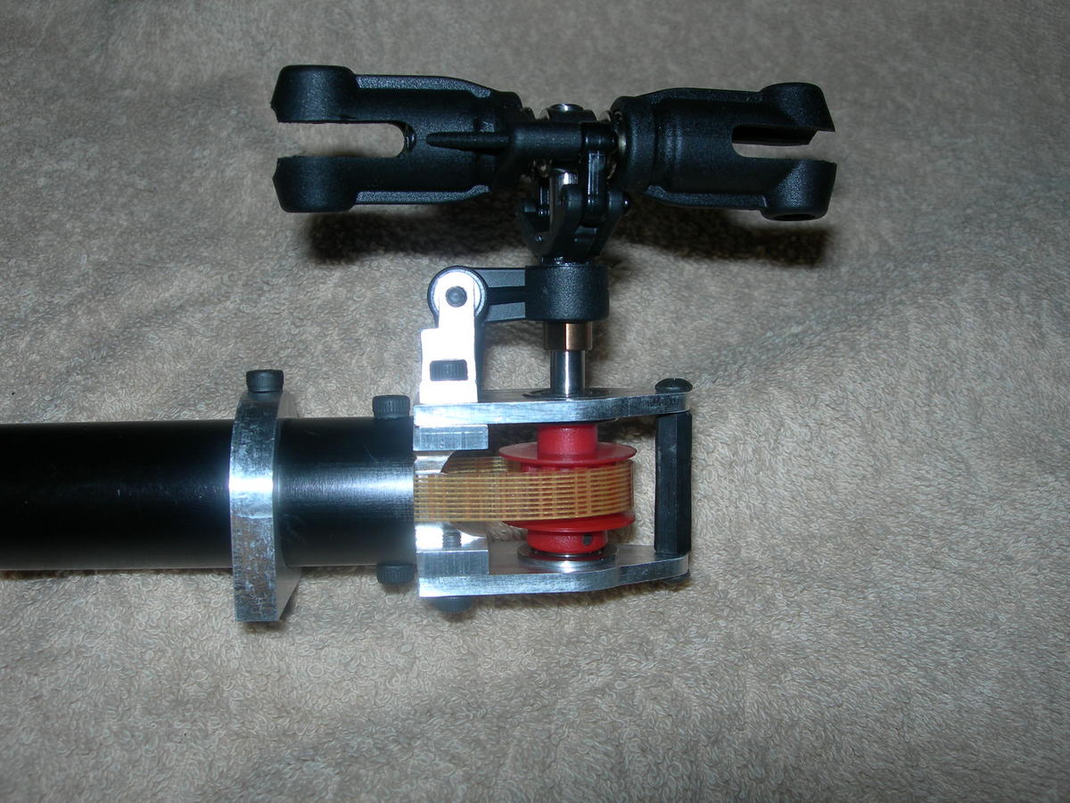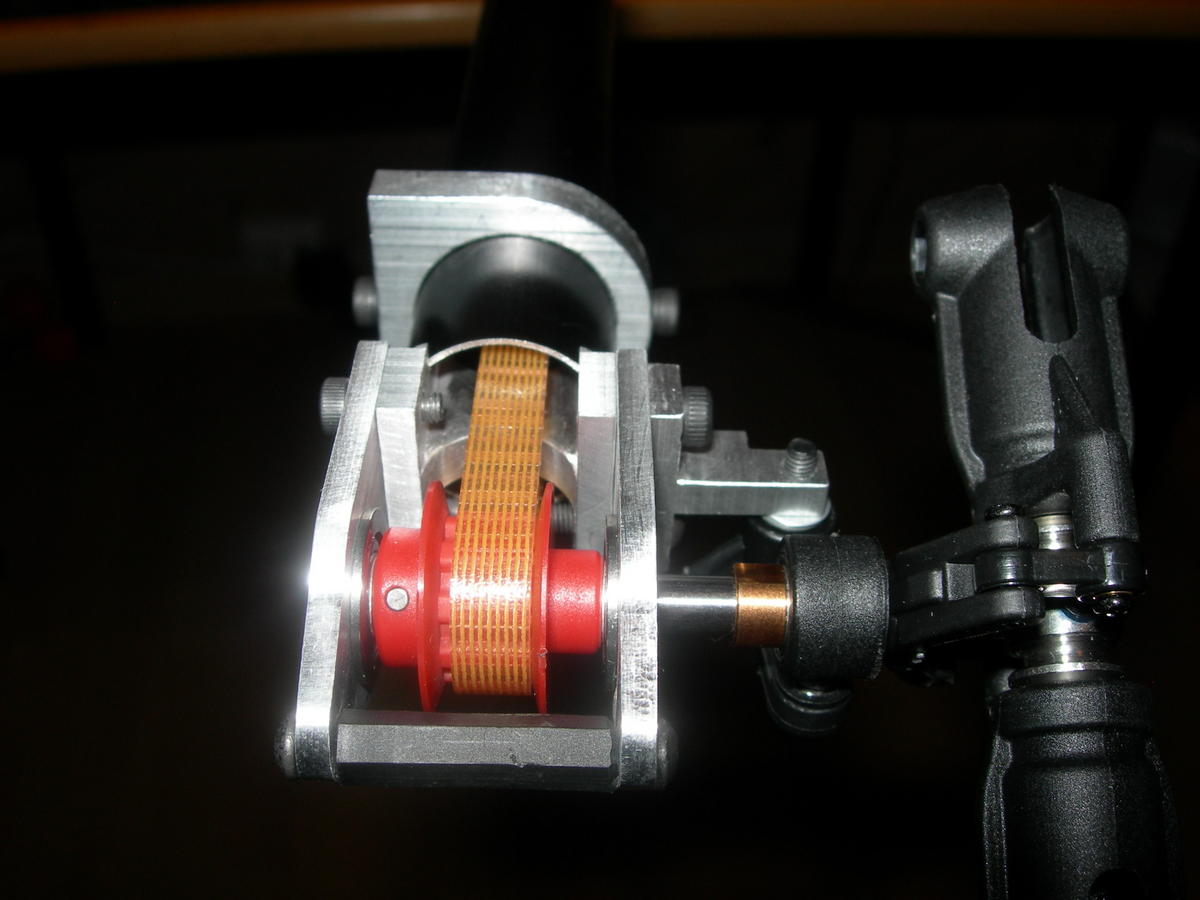 Hadde problemmer med og finne reimhjul til halen, tanndeling 5.08 eller XL, Skulle ha et hjul på 9 tenner. Det som er fint med denne delingen er at de fleste helikoptere med reim bruker denne delingen. Tok da og fikk tak i et reimhjul fra Raptor 50. Dette passet fint, måtte shimme opp med et på 0.3mm på hver side. Det er fint og ha litt og gå på.