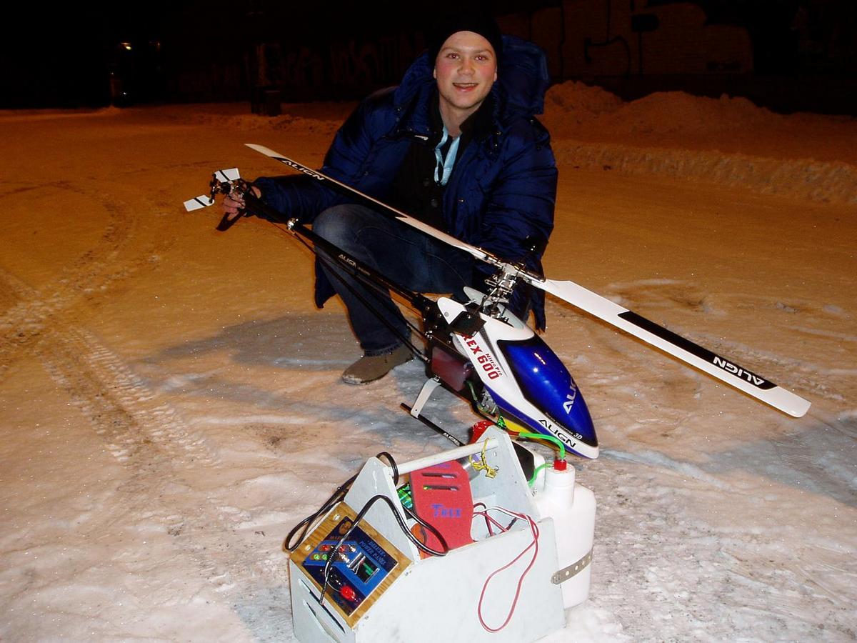 ja, glemte helt å si hva jeg selv synes om heliet. DET VAR HELT SINNSYKT! det var en litt rar følelse igår, når heliet var bygd ferdig så var det jo fint og bra osv, men ingen kribling i magen enda, men når vi fyrte det opp og johannes testfløy det, da hold jeg på å få spader! og enda værre da jeg prøvde, trodde jeg muskelsvikt fordi beina som løfter 160kilo i knebøy, de kunne knapt holde den veslelubne kroppen min