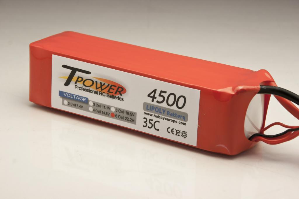 Har fått tilsendt 2 stk 6S 4500mah T-Power LiPO pakker som skal testes ut og måles mot kjente LiPO oppsett jeg flyr i min 50cc konverterte GB Yak samt ett 6S høy amp oppsett i min Extreme Flight 70" Extra.