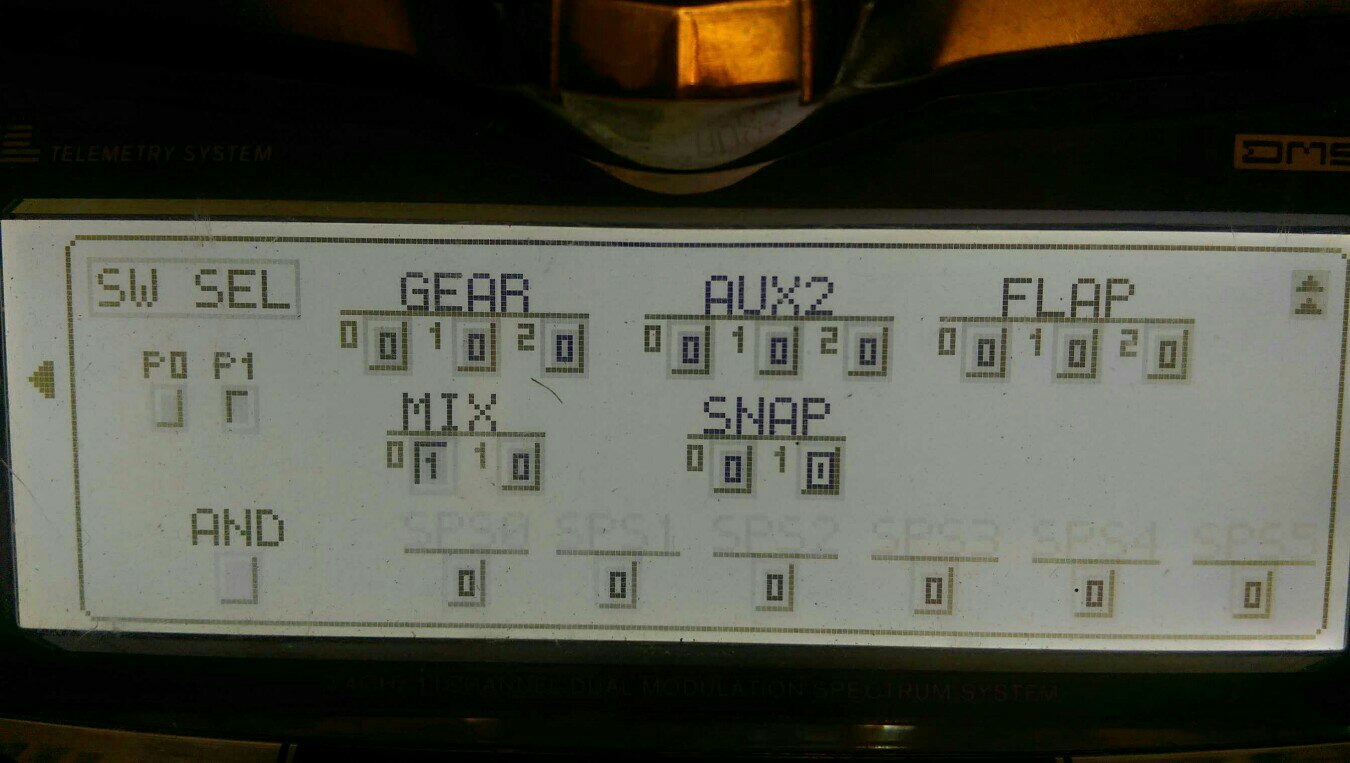 Ingen god ide å ha den mixen på hele tiden så går inn på SW SEL og roterer hjulet til jeg finner den bryteren jeg bestemmer meg for å slå mixen av og på med. Da ble bildet seende slik ut ;