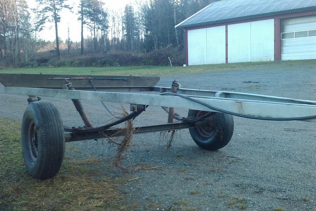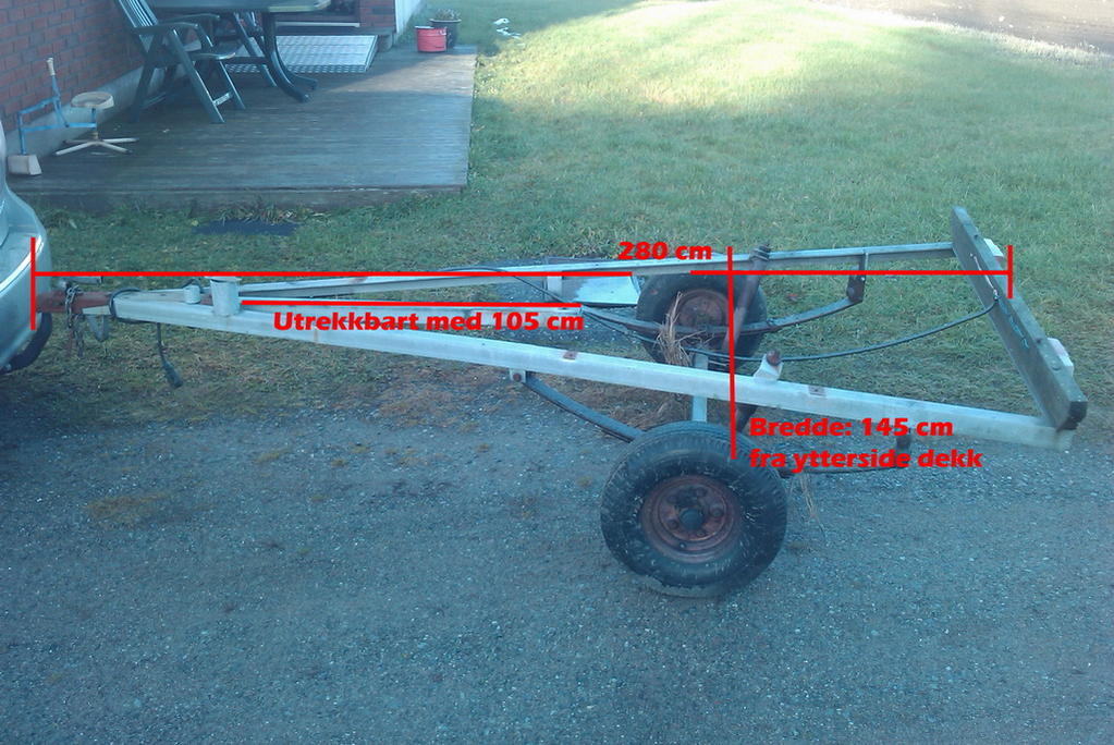 Da har jeg funnet frem min gamle arvete henger. målene er som vist på det ene bildet. Den er 280 cm lang, men staget som kan forlenges med ca 1 meter. bredden er bare 145 cm, men det passer meg ganske bra den kan plasseres litt enklere. Understellet er Bergly og serienummeret er inngravert. Noen ideer for å bygge kassen på denne og evt hvordan jeg får registrert den enklest og billigst. Den er i utgangspunktet registrert med en maxvekt på 540 kg.