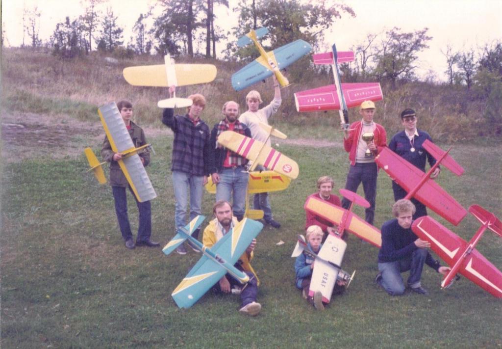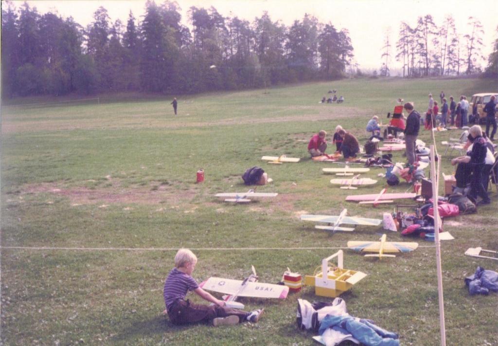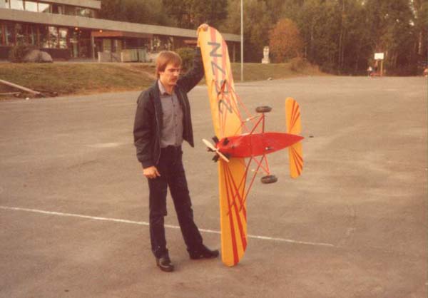 Da har jeg fått scanna litt Bildene er i fra 1982 da jeg var med i NM Linestyring. Jeg fløy da en Flite-Streak, samme året bygde jeg min første RC modell. Det var da en Sunday, senere kom Sunday 2 denne hadde da balanseror som standard.