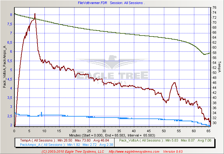 09.0V & 3.8A = 67°C (3 Celle LiFePo4)