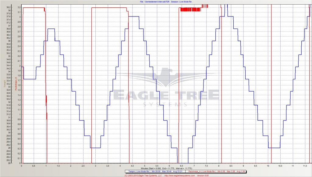 Intervallet mellom av og på slag med termostaten satt på 36°C og omgivelse temp på 20°C er ca 1:45-2:00 minutter.