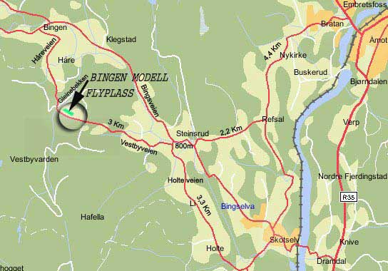Flyplassen ligger midtveis på Vestbyveien i Bingen mellon Skotselv og Åmot i Øvre Eiker Kommune Det er på sørsiden av Bingen elva, en drøy ½-times kjøring fra Drammen. For de med GPS kan følgende koordinater tastes inn: 09º 47' 02" ØST og 59º 52' 11" NORD