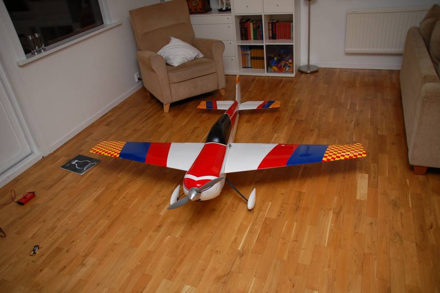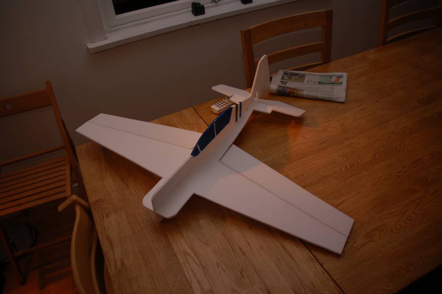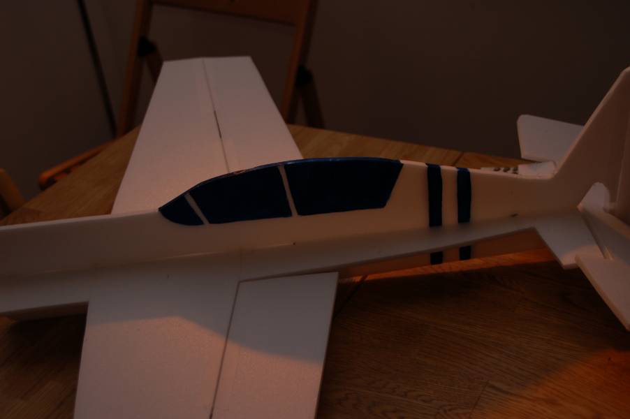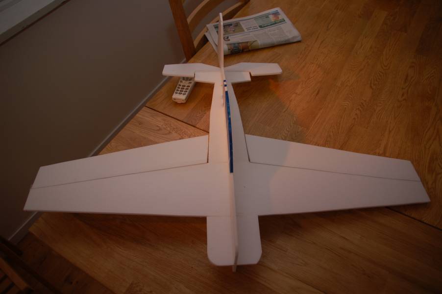 Legger ved et bilde av flyet så langt. Noen små justeringer før jeg begynner med limingen.