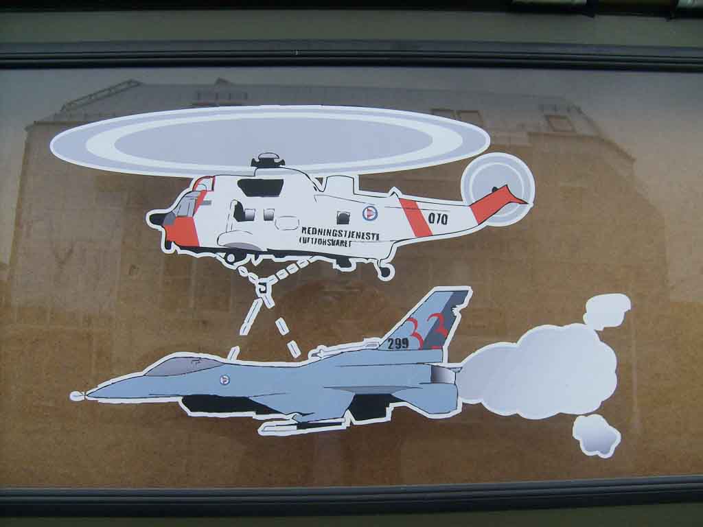 Mye kan sees på bilvinduer. Hvilken mening som ligger bak, er jeg ikke helt sikker på. Men det må vel være helikoptergutta i Forsvaret som står bak.
