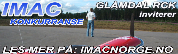 Da er det bare to uker igjen folkens til årets første IMAC konkurranse her til lands og Glåmdal RC-klubb i samarbeid IMAC Norge inviterer til IMAC konkurranse på Glåmdal RC-klubb sin modellflyplass på Maarud 7 og 8 juni 2008.