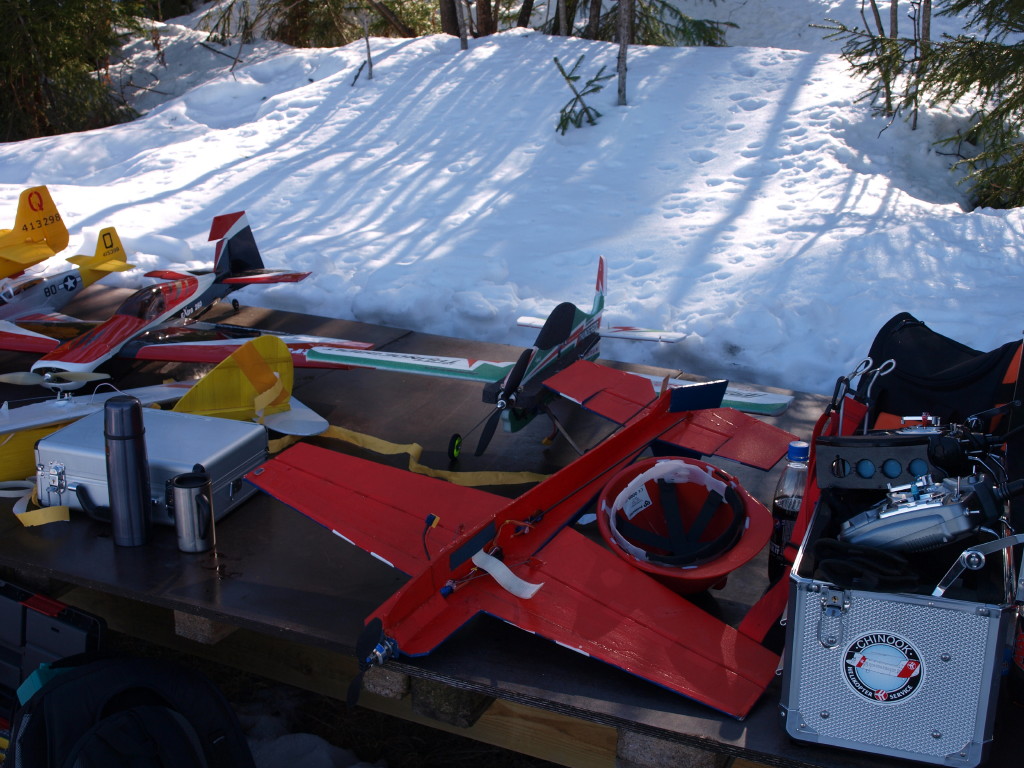 Har sett gjennom stallen og finner et par modeller som kan brukes. (Dvs innenfor batterikravet). Men de virker de litt merkelige til dogfiht. Dog ikke merkeligere enn Stryker da. Det ene er en glassfiber motorseiler, den andre en 3D Katana fra Precision Aerobatics. Men jeg er redd vingene blir i overkant sårbare om de kommer borti en propell. Har FunCub også da. Nei, dette egner seg vel dårlig er jeg redd...arhennie
