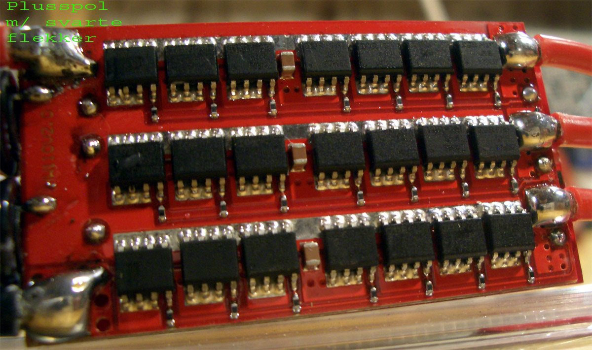 Red: Legger inn to bilder til. Kondensatorene så jo helt forkullet ut på det første bildet. De fremstår riktigere på bilde 2. Ser ikke noe feil på den andre siden av ESC-en heller. Gjør noen andre?