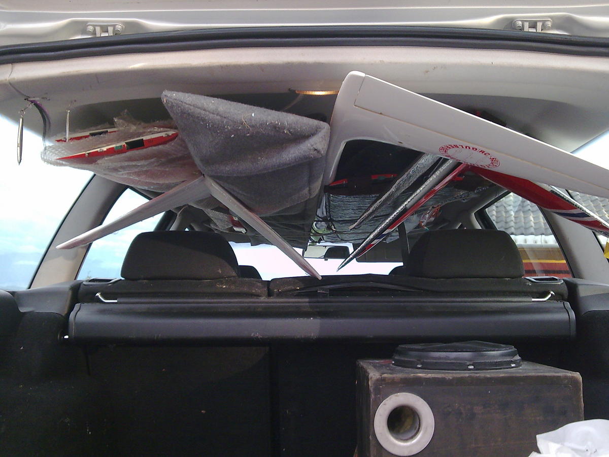 Volvo 940, ja. Nei, bytter ikke ut den med det første. Festehullene er der, så det er bare å stikke innom et bilopphuggeri . Fant forøvrig ut at den "rullegardina" som brukes for å skjule lasten er fin som hylle for mindre, lette modeller. Da kan man laste bilen i to plan (tre med lastereimopplegget).