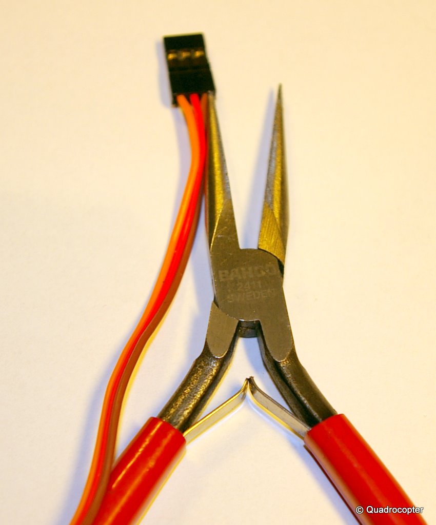 Her er en grei video som viser bruken av "crimping tool" og laging av servokontakter : http://www.hansenhobbies.com/ Etter et par mislykkede forsøk, går det veldig greit å lage egne. Spesielt hvis du skal ha lange ledninger som er tvunnet/flettet, er det fint ha ha 10-20 meter å klippe av.