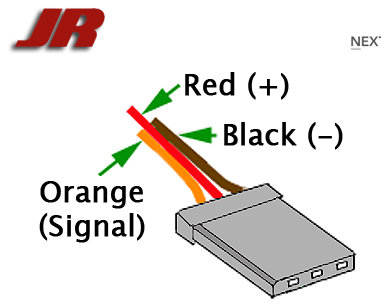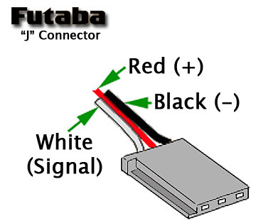 Ser du en JR plugg fra fronten så ser du at den har en svak D-form, men Futaba har en liten finne som stikker opp på den ene kortsiden.
