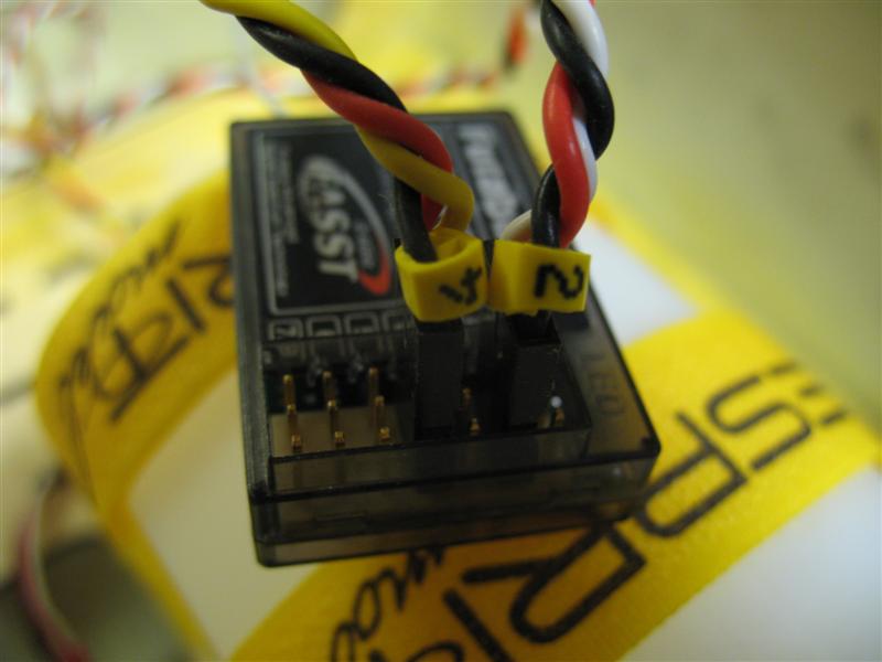 Har tullet med litt forskjellige metoder for å merke ledninger med kanalnummer, slik att det skal vere raskt å flytte en mottaker fra eit fly til eit annet. Har prøvd med elektrikertape med tysj skrift, maskerings tape og tysj og tekstmaskin strimmel som man limer rundt servoledning. Disse metodene funker en stund, så forsvinner tysj skriften, og ledningene blir etter vert også klissete av limet på teipen. Det ser også ganske stygt ut med disse løsningene.