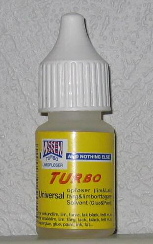 En liten advarsel.. Jeg tok av doseringsspissen ved en feiltagelse da den satt fast i lokket på flasken, og da jeg sølte litt på byggebordet så oppdaget jeg at den faktisk oppløser mer enn lim og nisser.. Lakk var heller ikke spes. tøff når denne guffen kom på besøk..