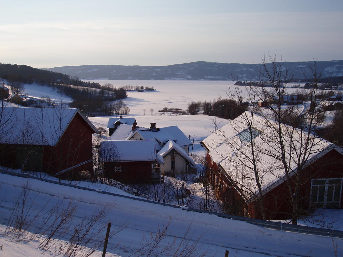Jeg bygde det "skjeve" tilbygget på det hvite huset som ligger i innersvingen med stor rød låve og mye hage. Bilde er tatt mot huset og ned mot Røykenvika.