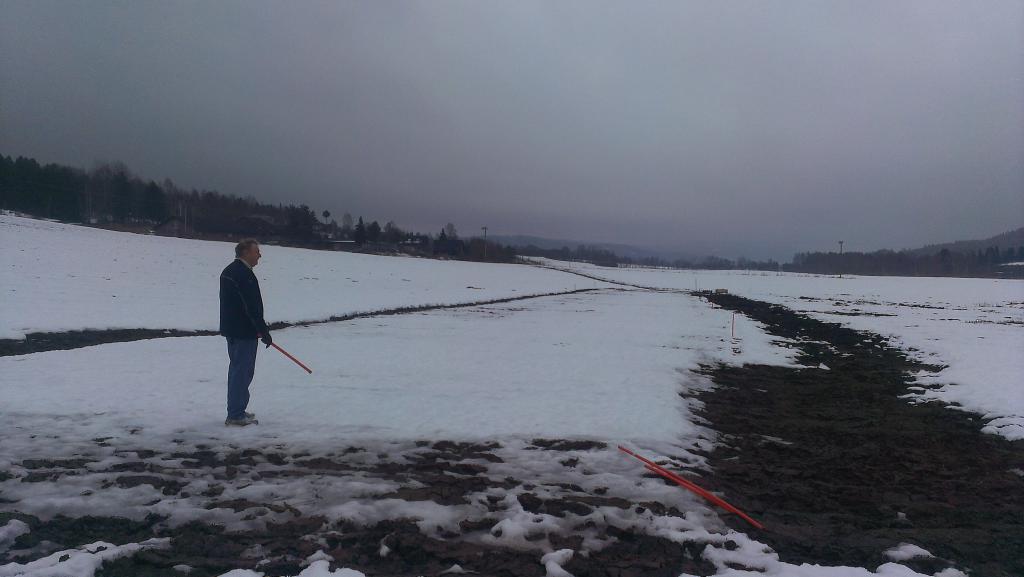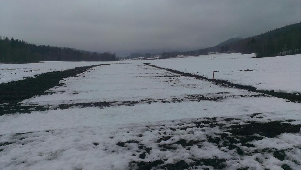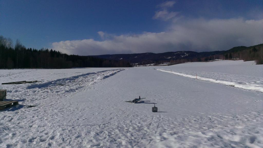 I dag har jeg vært ute med fresen og Mr Honda har kastet ca 96,8m2 med snø over hele stripa (88x11m a 10cm høyt lag = 96'800) så nå ligger det rundt 10cm med snø over stripa som driver å setter seg i sol varmen. Da jeg har måket snøen fra jordet vedsiden av langsidene opp på stripa. Vil i kveld ta sloden og gå over og planere dette flatt igjen, og da tror jeg vi har PRIMA forhold igjen lørdag morgen.