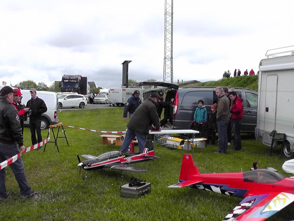 Da er forberedelsene godt igang til morgendagens show. Ikke så mye modellfly, men de som kommer tror jeg lager et godt show. Desto mere fullsize fly å oppleve med alle sanser. Se, høre, føle, lukte, men kanskje ikke smake på . Det blir og annet å se, historiske kjøretøy, veteranmotorsykler, dragkjørig og drifting.