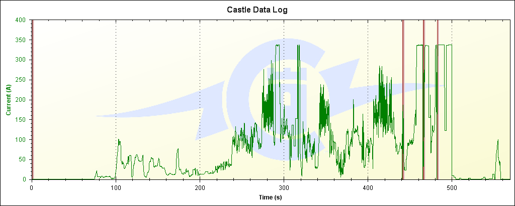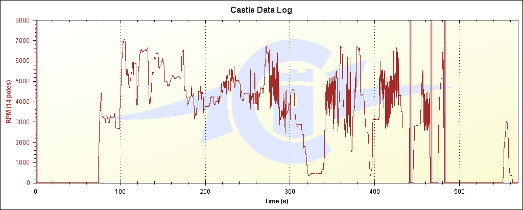 Under en problemfri tur med tilnærmet lik flyging, logger jeg normale tall som sånn ca. 86A, 3600W 7000RPM.