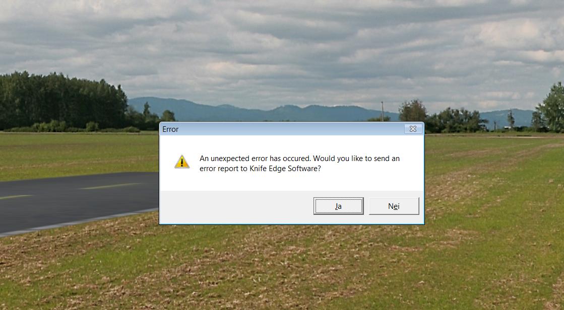 Når jeg kviterer feilmeldingen ut så lukkes programmet, dette har pågått i 3 dager og aldri før.
