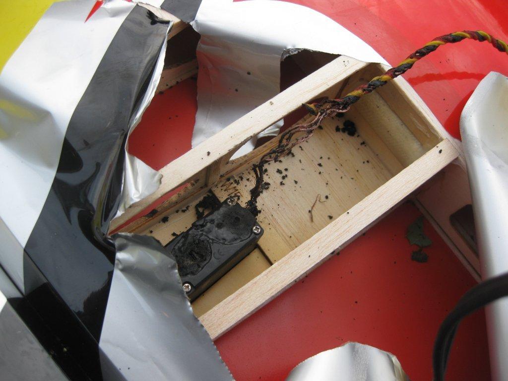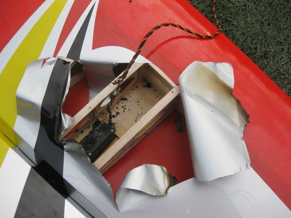 Etter att havarikomisjonen hadde slått sine hoder og teorier sammen , er konklusjonen att den ene servoen i vingen hadde brent og kortslutten hele linja fra batteri via motager og servokabler.