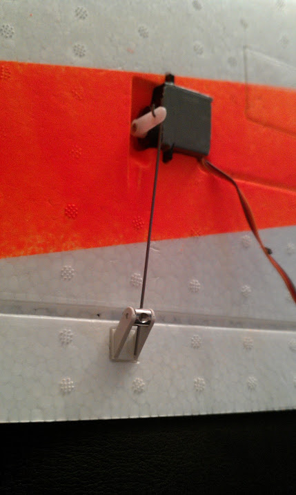 Hmmm. Servoene passer perfekt i fordypningene både på størrelsen og i styresporene. "Vippearmene" på servoene står også på linje med festene ute på rorflatene. Alt ser dermed perfekt ut etter mi mening. Vil dette si at jeg har fått tak i 2 like servoer , mens jeg egentlig skulle hatt 2 "U-like" (speilvendte)??