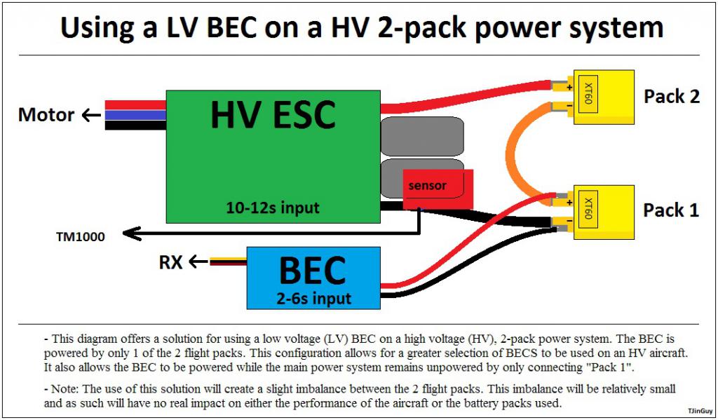 haft en lite fundering på in kopplingen , lite råd från eletronik guru her, tror ikke elektronik tar så mye strøm men kan vare bra å har det med i telling , på mina 12s setup så har kopplat som på bilden