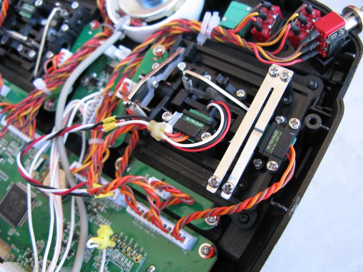 Fikk omsider mine M9 fra Banggood. Flyttet over stikkene fra min Futaba FC-18, som hadde bryter. Måtte utvide åpningene nederst (5mm) og gjenge den ene opp til M4. Den med bryter festes med set-skrue. Plugget den inn i stedet for SE.