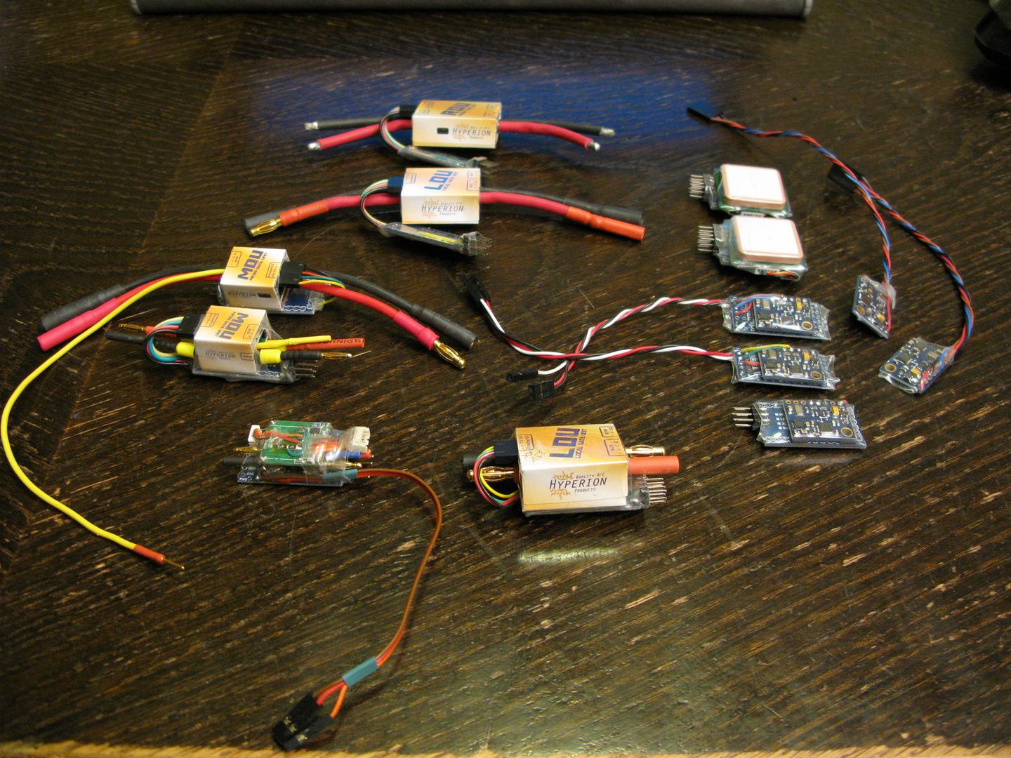 Jeg startet ut med en sensor som støtter batterispenning, strøm, forbruk (mAh), turtall og to temperaturer. Denne ble basert på Hyperion sine sensorer for E-Meter. Disse er presise og rimelige (utgående produkt). Det finnes tre varianter, MDU, LDU og RDU. MDU er liten og har innebygget turtallsensing (børsteløs), LDU tåler mer spenning og strøm. RDU har i tillegg innebygget datalagring, temperatur- (x1) og høydemåling. LDU og RDU benytter eksterne sensorer for temperaturer og turtall. Koden støtter alle tre variantene, og man kan kalibrere disse ved å jorde noen av de ledige pinnene på Pro Mini: