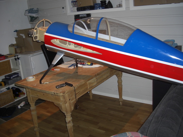 Modellen har tuned pipes tunell og kommer med CF understell og tubes til vinge og stab. Alt var helt og pent, strøken betrekning og alt som er forborret/skjært passer som hånd i hanske. Dette blir plankekjøring. Det som blir nytt for meg er Tuned pipes innstalasjon og servo programering.