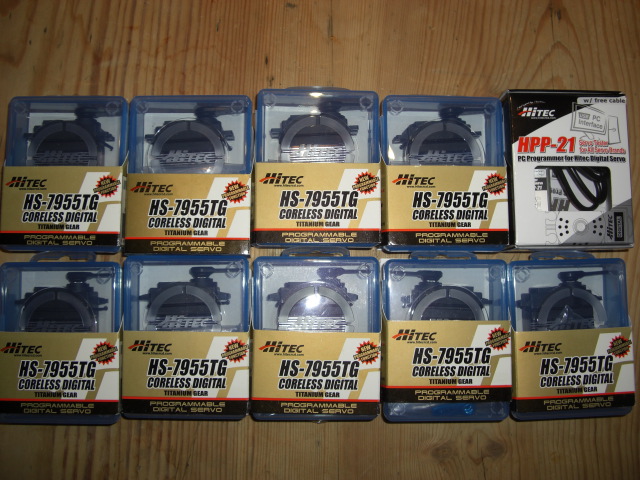 Spektrum AR9100 mottaker. Hitec HS-7955TG servoer på alt (9stk.). Vurderte og bruke 1 stk. Hitec HS 7950TG HV servo på sideror. Men det er delte meninger om det er nok og siden jeg skal bruke 6,6v batterier får jeg ikke utnyttet hele potensiale i en slik servo. Da blir det 2 x Hitec HS-7955TG i SWB servo tray.