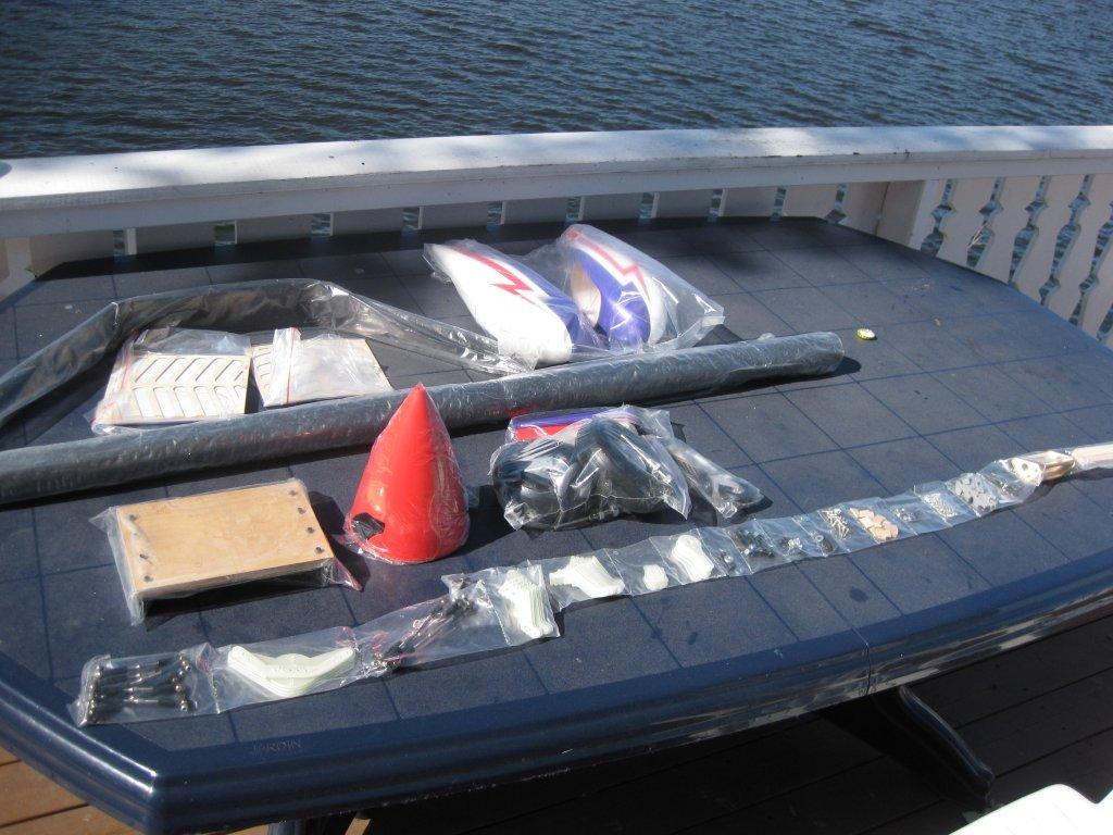 Ryddig sett med alle skruer og smådeler sirlig sortert og samlet i en plastremse.