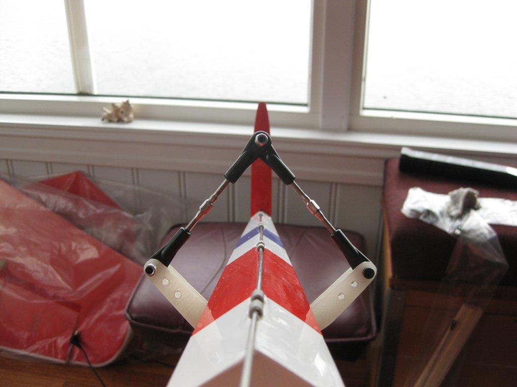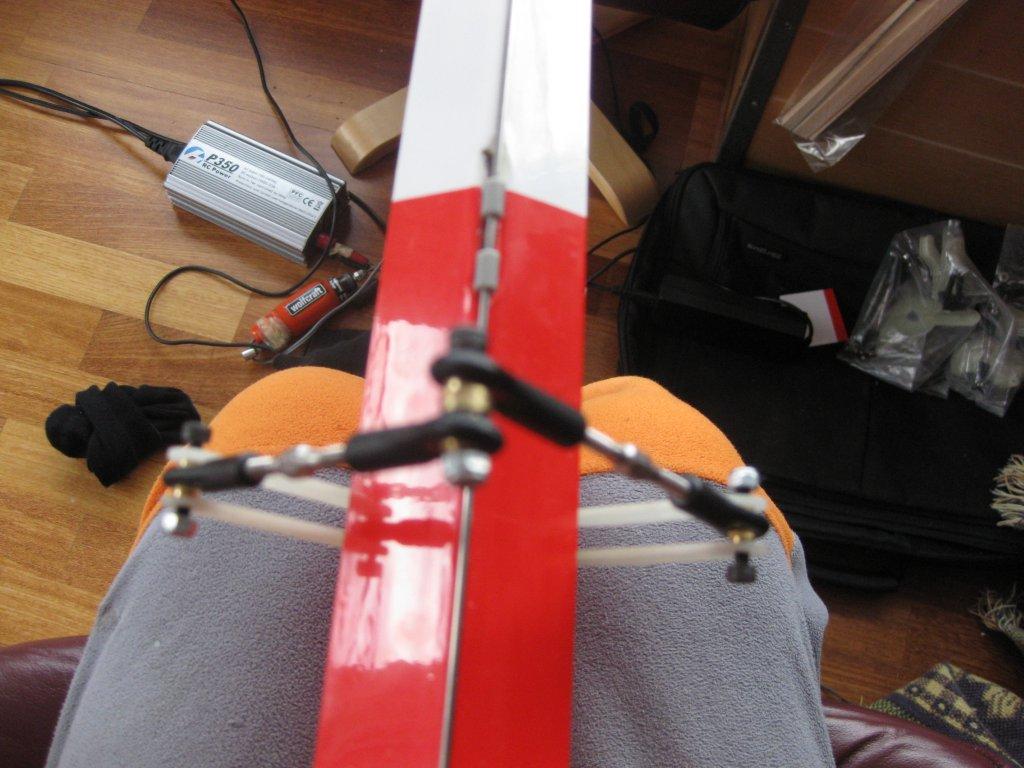 Slipte over limflatene på rorhorna og limte disse med casco polyritanlim. Dette er realt og jobbe med og det er også litt expanderende. Satte i stagene også for å sikre rett plasering av rorhorna. Disse stagene er tilogmed ferdig sammenskrudd og bare litt justering av lengder så er det klart.