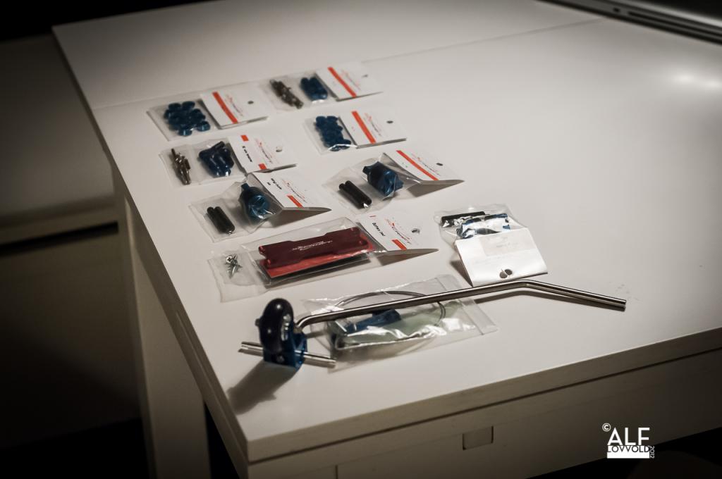 Her er forøvrig noen av de siste bling-tingene som dukket opp i posten på Lørdag, Spoton og Secraft stasj. Kjørte på med en ny halehjuls-løsning da jeg synes den som kom med Pilot-kittet ser rimelig pinglete ut kontra 40% størrelsen - ser mer ut som noe som kunne passet på en maks 33%.