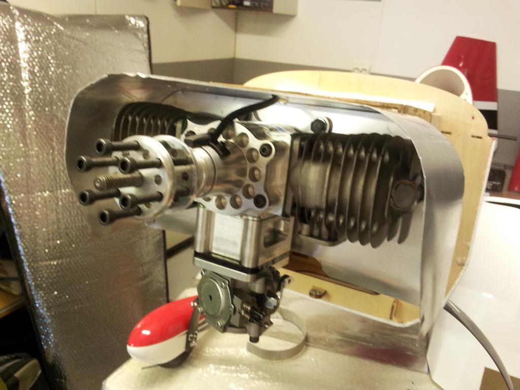 Motor montert, med BME sin ferdige løsning for baffling bak motor til Extra cowling