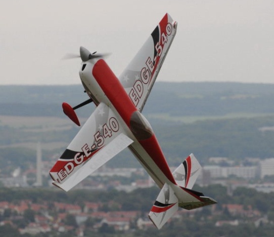 Modellen er veldig snill og stødig, som en 100cc maskin pleier å være. helt ukritisk i sakte fart. Veldig enkel i flatspinn. Går litt tom for høyderor i harrierøvelser, (men er nok litt uvant for piloten også). Var bare å slippe stikkene i ryggflyving