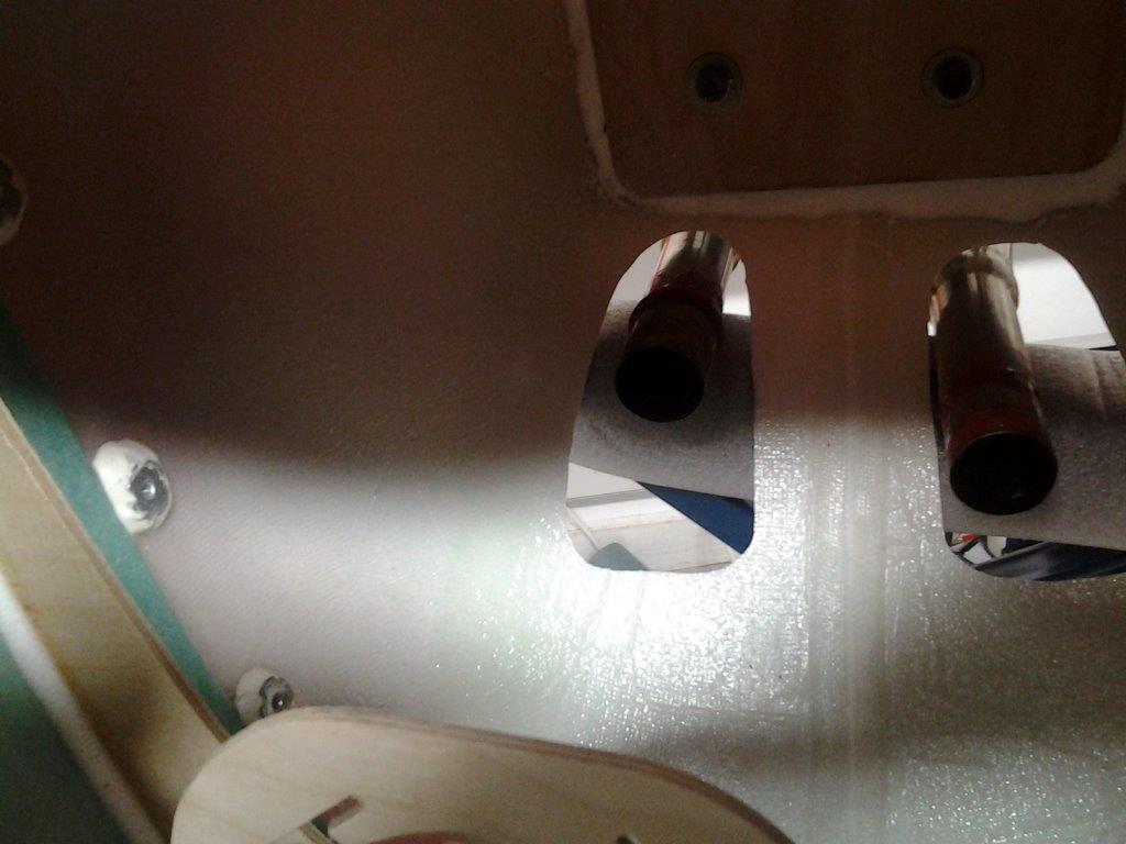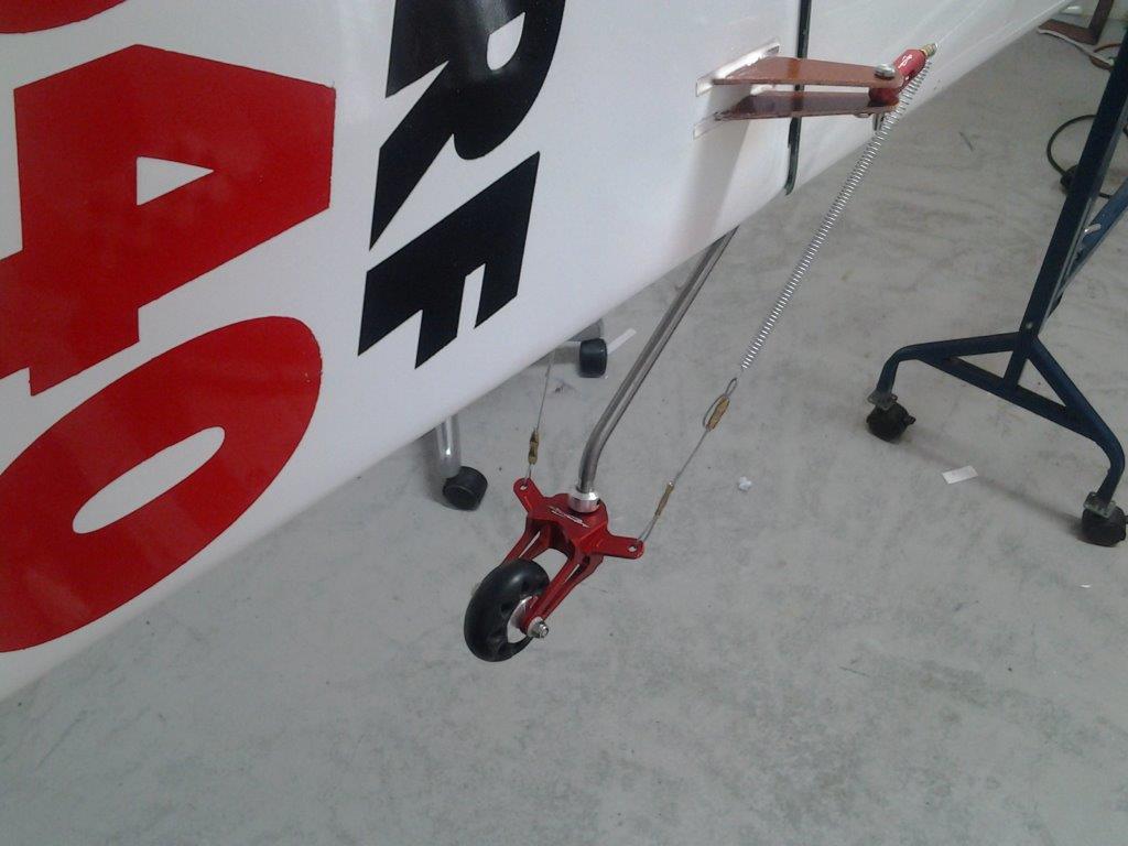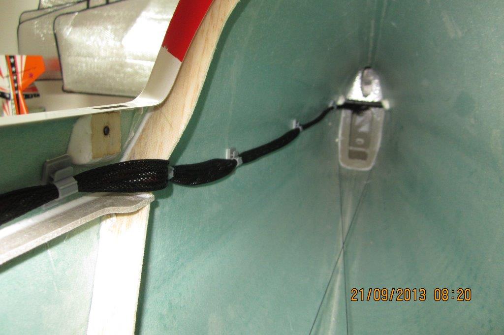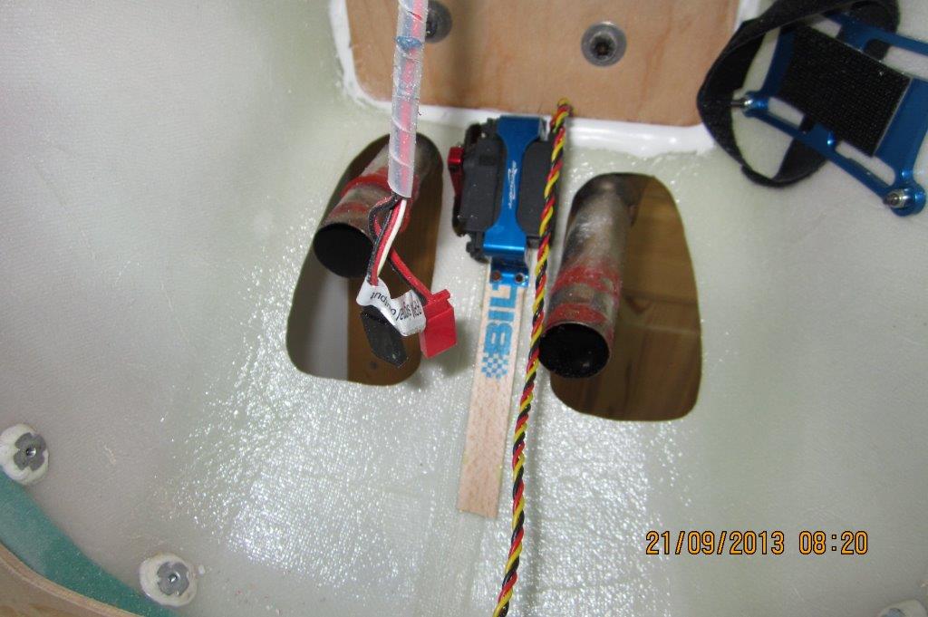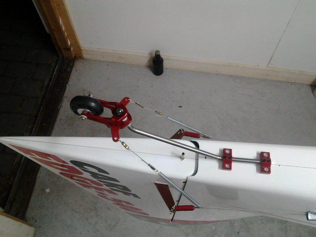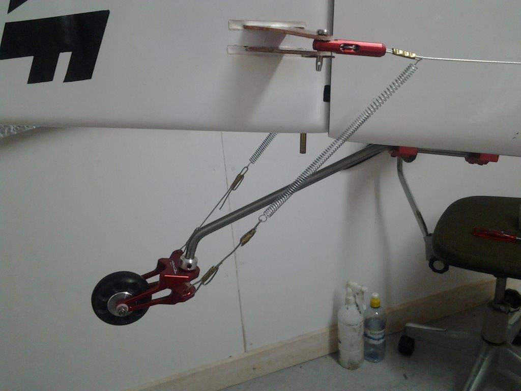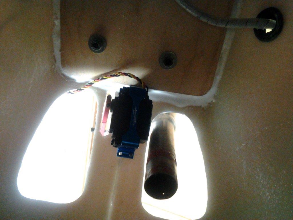 Halehjuls system på plass. Prøver litt frem og tilbake på hvor jeg skal feste "styrewirene", kan vel ikke bli helt feil å la dem henge på overføringswirene heller? Det blir ikke slik "knekk" på overføringen slik som det kan se ut som på bilde. Får se litt mer før jeg bestemmer meg hvor jeg fester dem. Følger med ett rorhorn også, men det blir ikke noe bra synes jeg.