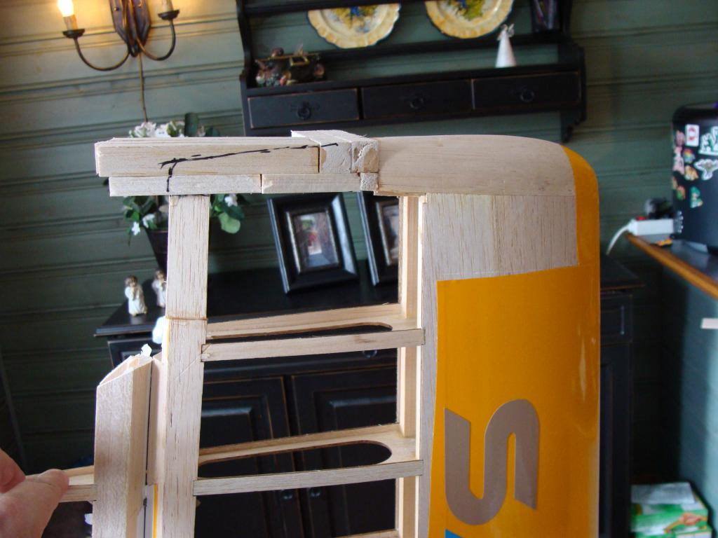He he ......har revet ut ytterste hengslen + klossen den sitter i ......i vingen. Ikke noe stort problem for dere byggere Ellers er flyet fint...........+noen sprekker i hjulkåper.