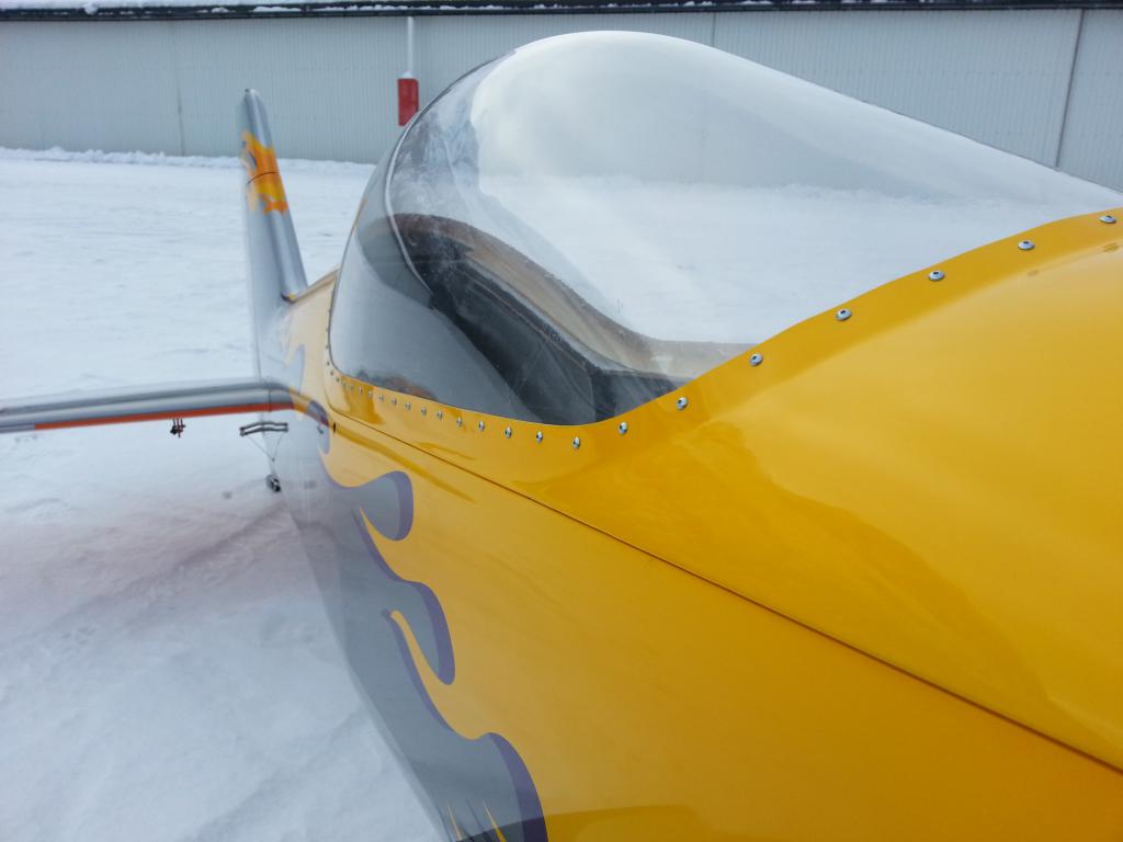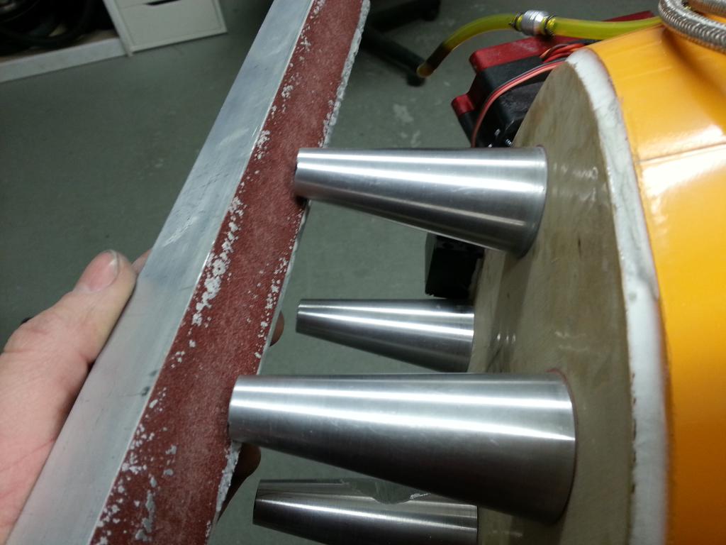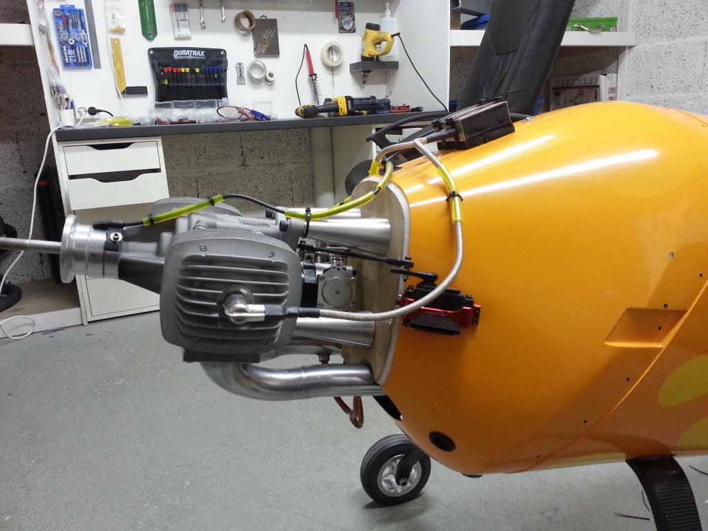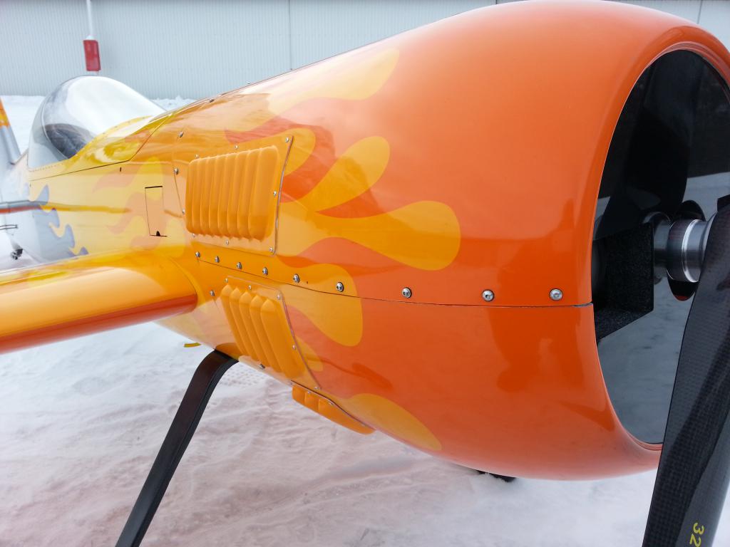 Pga. plassering av vingerør og understellsinnfestning er det svært begrenset hva som passer inn av eksos. Greide akkurat å få plass til JMB cansistere og bend.