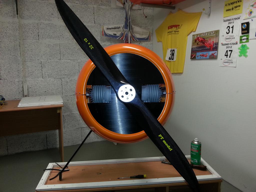 Har lånt en PT 32X10 prop. Håper og tror den er for liten, men den vil gi meg en referanse for propell valg.