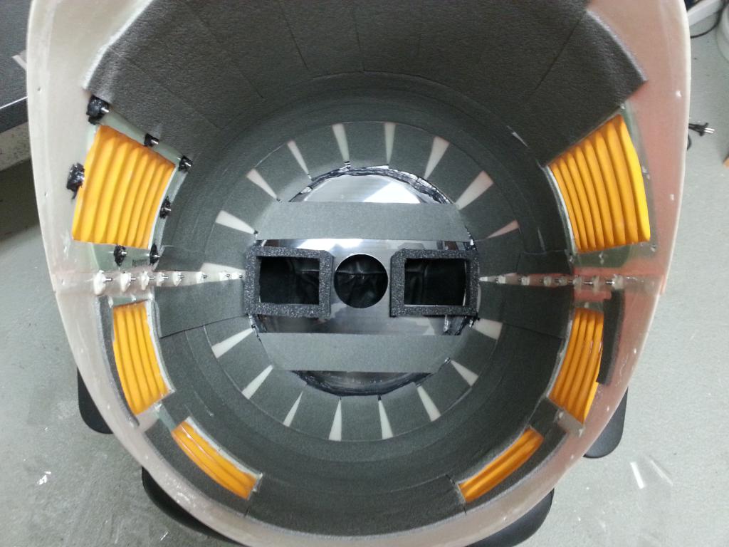 For tilstrekkelig kjøling har jeg limt inn en CF-plate i front. Lagde kanaler inn til sylindere med noe sort skummateriale jeg hadde liggende.
