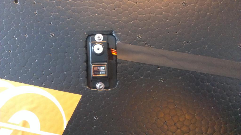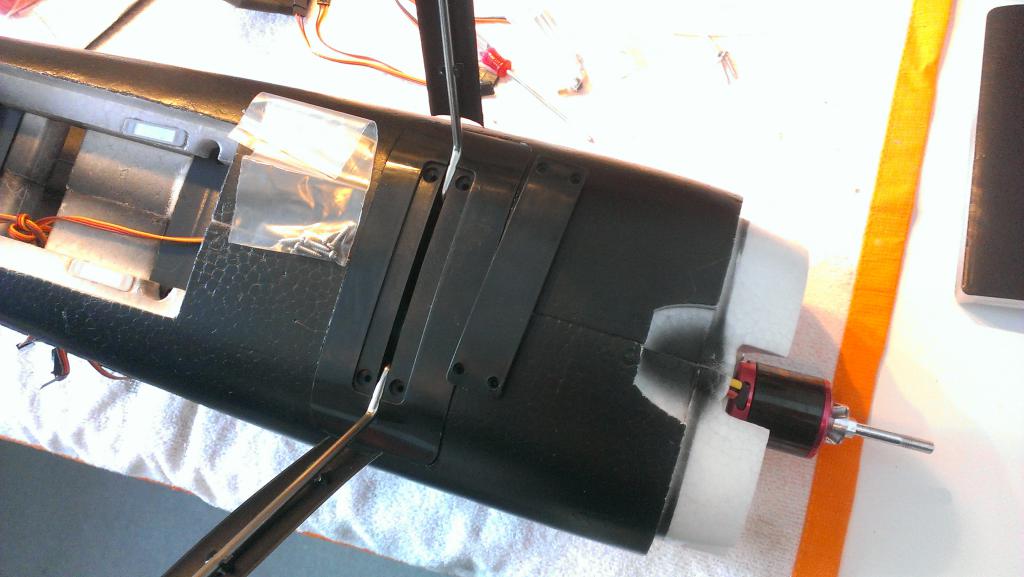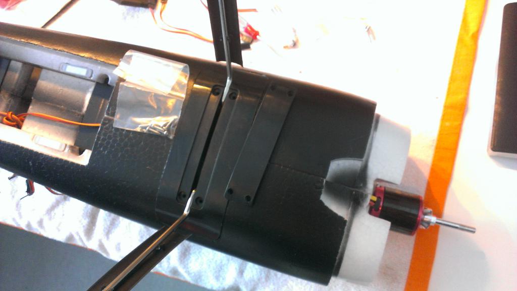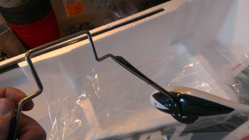 Vingene tres så i fra hver kant sammen med glassfiberrør. Festes ved å skru 4 lange skruer gjennom kroppen fra undersiden.