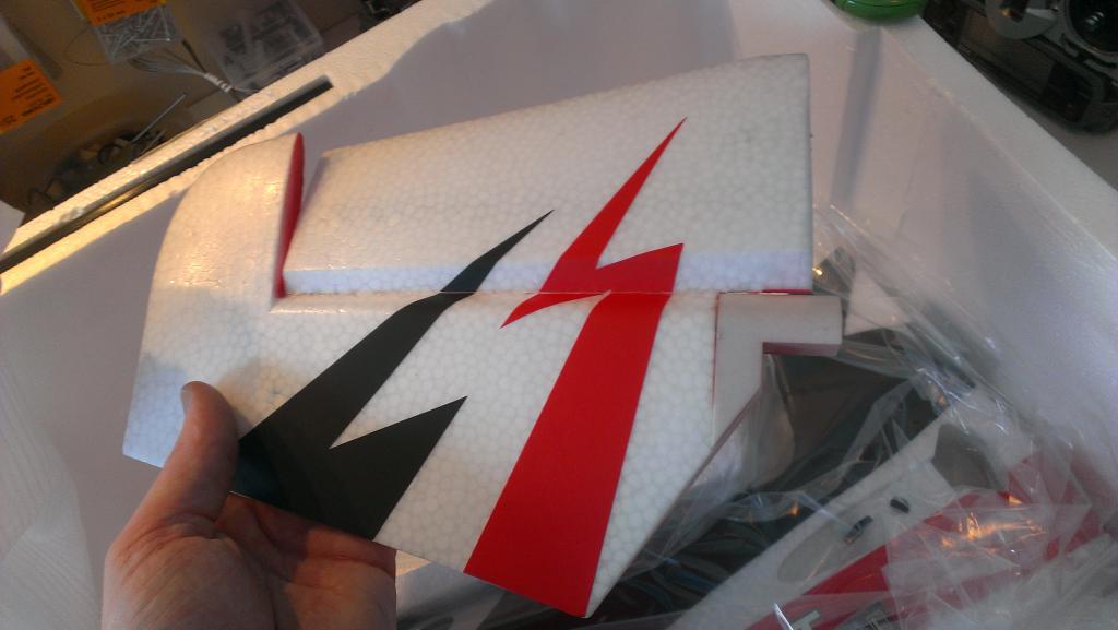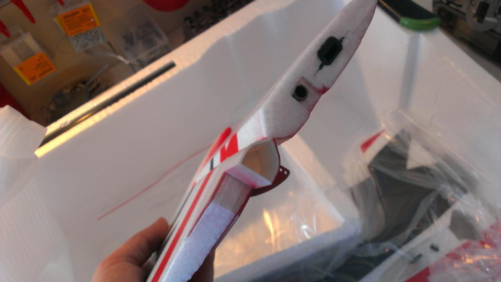 Det siste man gjør så er å montere vingene. Før man gjør det så skal man lime på et par fairinger som sitter i bakkant i vingeinnfestingen. Disse limes enkelt på med limet som følger med.