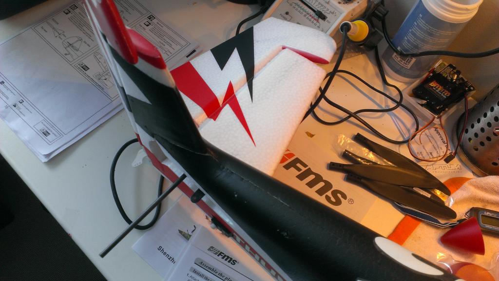 Når alt er ferdig så gjenstår det å montere propell og spinner. Disse er i samme stil som alle andre FMS fly og det innebærer løse blader som skrus fast i spinnerhub. En grei løsning som ser skala og flott ut men er kanskje ikke optimalt når det gjelder effektivitet.