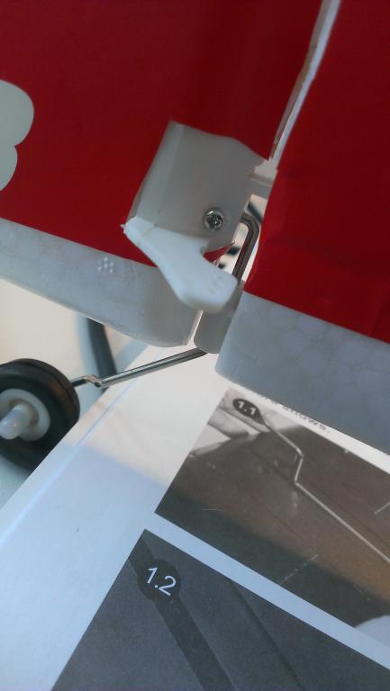 Manualen tar først for seg montering av understellet som er en pianotråd med ferdig monterte hjulkåper og helt klar til å skrus fast i kroppen. Liker det faktum at det er pianotråd og ikke aluminium understell da pianotråden tåler mye mer juling før den gjør skade på innfestingen. Understellet dyttes nedi kroppen og festes med en plate og fire skruer.