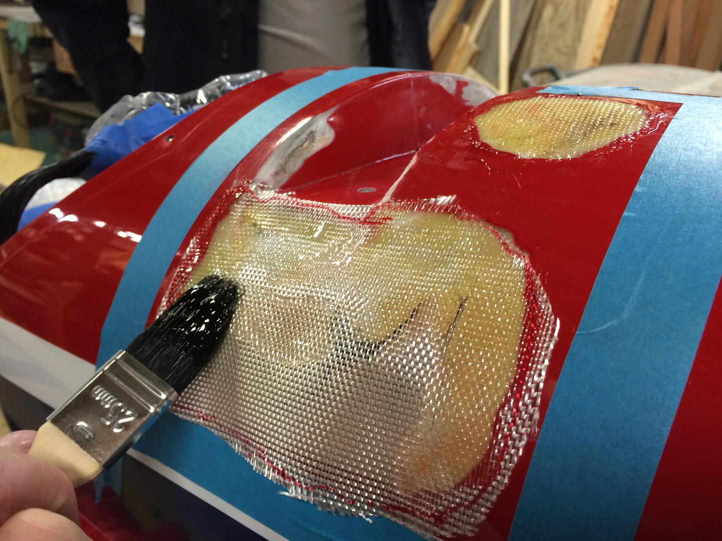 Detter ble glassfiber duk for den innvendige støpen klargjort og limt med epoxy'n.