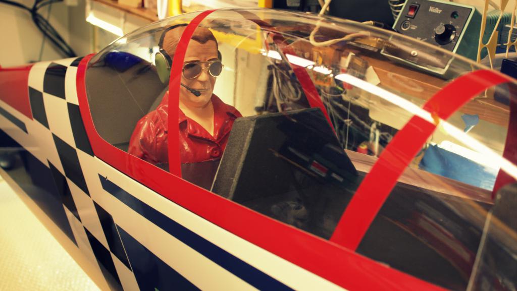 Piloten og instrumentpanel er ferdig. IMAC program er på plass, samt at piloten har fått en mic på headsettet Detaljer..detaljer...