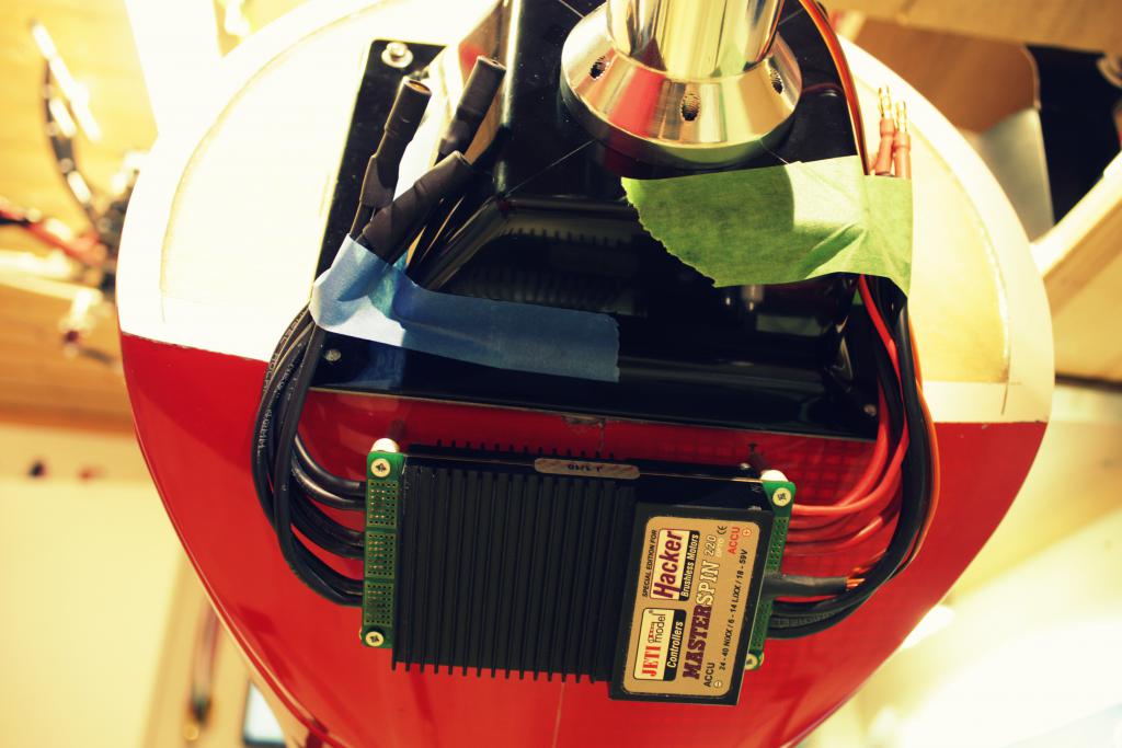Se litt på plasseringer av diverse ting. Diverse telemetri duppeditter m.m. Jeti regulatoren fikk forøvrig plass inne i cowling under firewall. Her vil den motta plenty mer kjøling